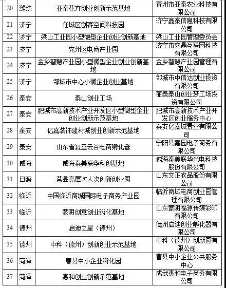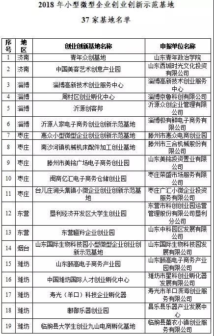 附件1:2018年度山東省小型微型企業創業創新示范基地名單